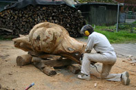 Tag für Tag galt es sich zu konzentrieren bei dem Umgang mit der gefährlichen Kettensäge und dennoch neugierigen und interessierten Spaziergängern Rede und Antwort zu stehen. Es war körperlich sehr anstrengend - doch es hat auch viel Freude bereit und die Mühe hat sich wirklich gelohnt.